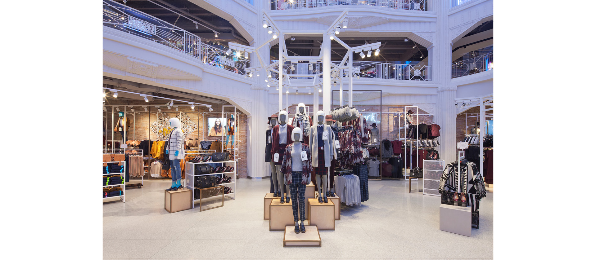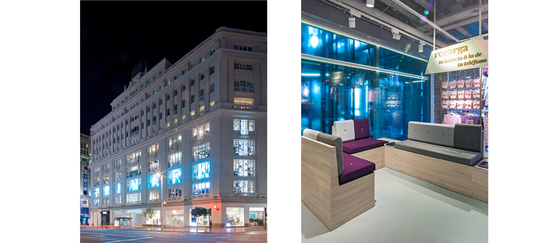 Further enhanced by the addition of a well-designed lighting scheme centred around YORI, the new Madrid Primark store offers a totally new concept for the retail world and provides customers with a unique, bespoke and ultimately thoroughly enjoyable shopping experience.