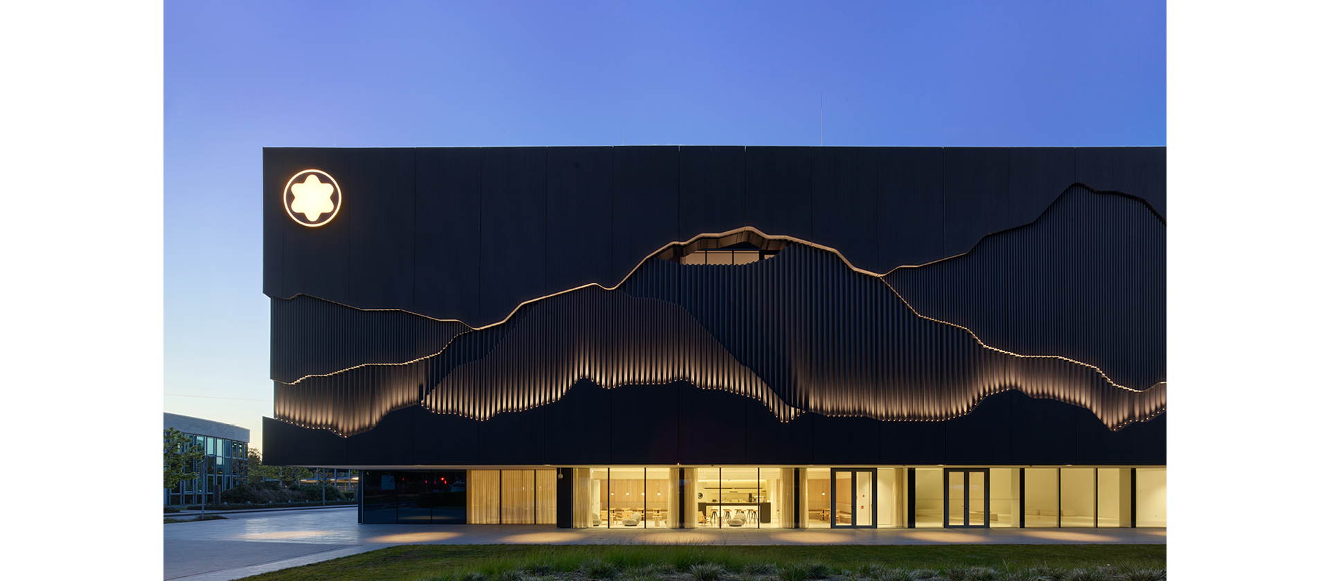Montblanc Haus represents an unmissable hot spot of the city: the structure of the building’s façade draws the striking image of the Mont Blanc mountain range, with the Mont Blanc as the highest mountain of the Alps. The large, elongated bar shaped building is located directly in front of the administration and production building.