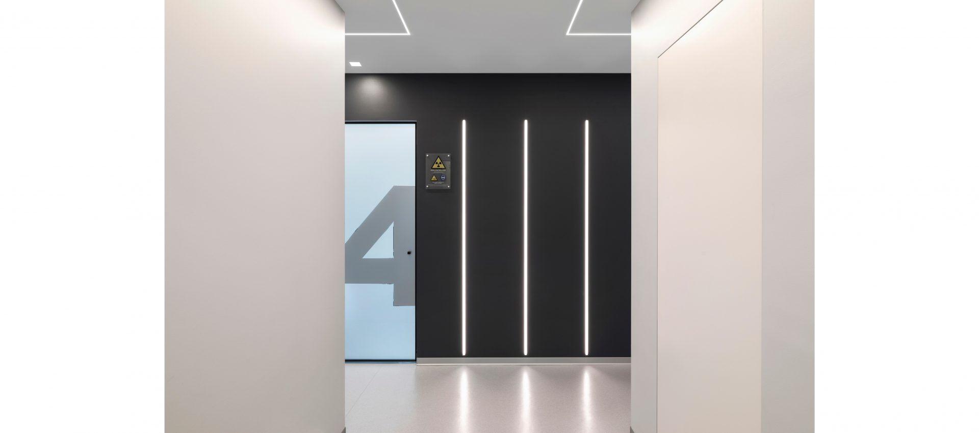 A sliding glass wall leads to the clinical area consisting of 5 dental rooms, a large-scale sterilization and an OPT room. Traceline Recessed mounted on the ceiling and on the walls allows the creation of a continuous and harmonious lighting line within the studio, while Trybeca gives the perfect finishing to the lighting project.
