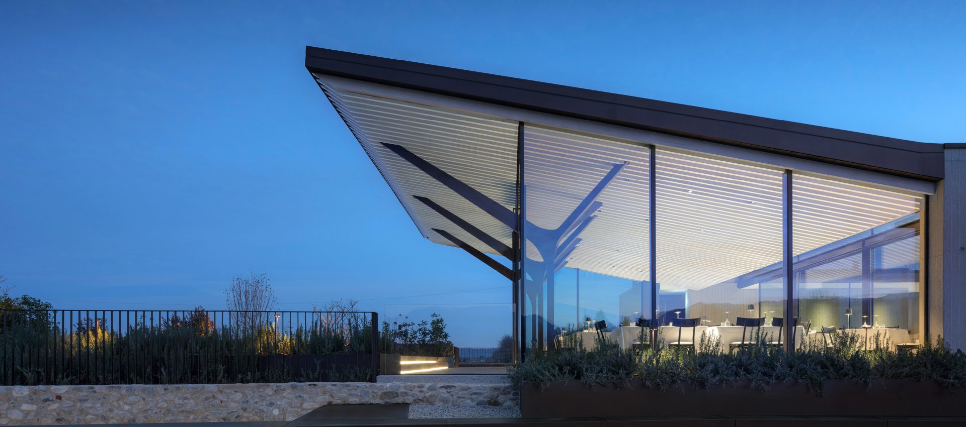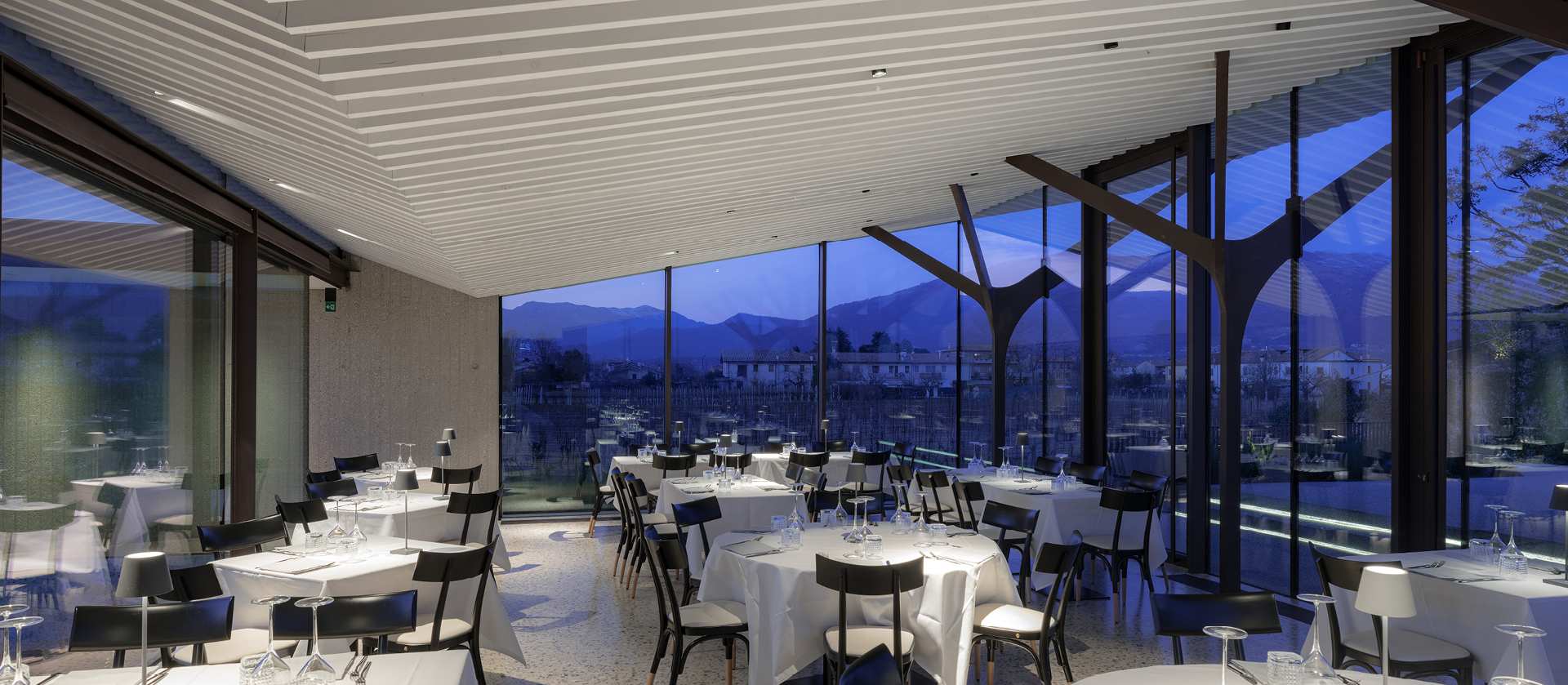 La Ghiacciaia is characterized by a unique location: a bunker from the Great War completely transformed to welcome guests, built from the dungeons of Villa Pola Neville Pederobba. The architecture of the restaurant, elegant and contemporary, fits perfectly with the environment in which it is inserted: from the terrace of the same it is possible to have an incredible view of the surrounding vineyards.
