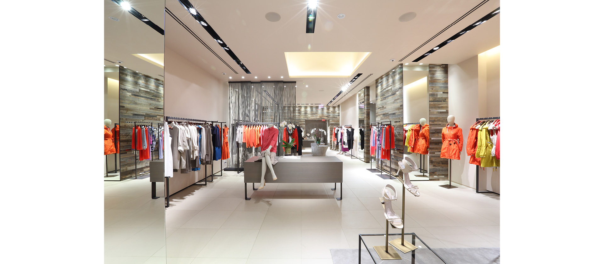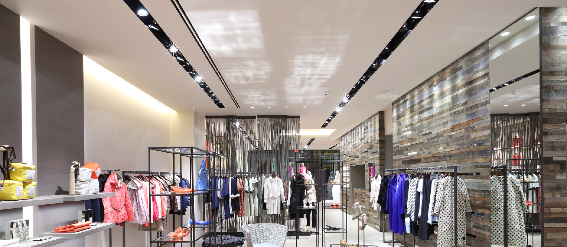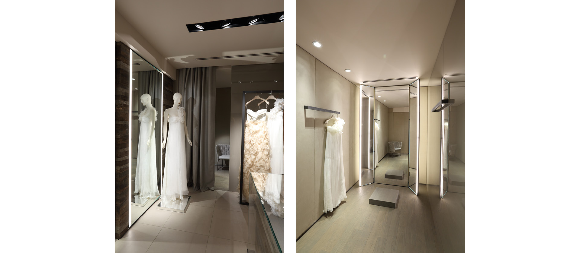 The Reggiani luminaires blend in with the furnishings and focus attention on the garments and accessories, the real protagonists of the store. The lighting project involved the use of Mosaico – with different light sources: metal halides, halogens and LEDs, in 39W MH, 75W AR111 and 16W LED – with adjustable and fixed Low.