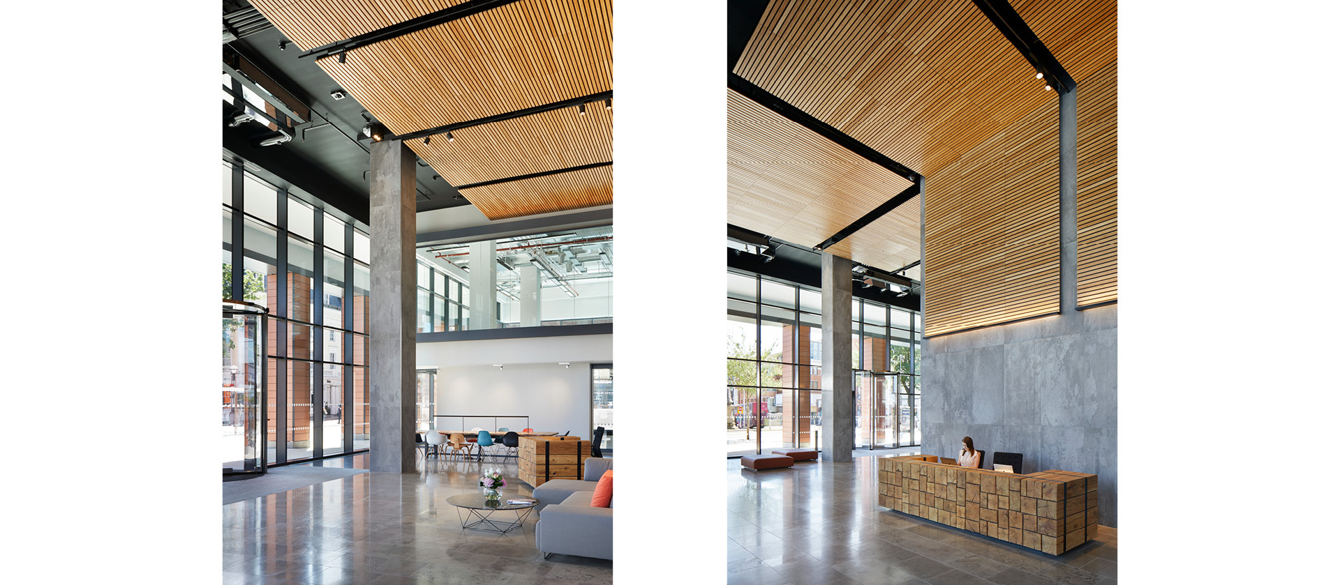 The drama of the building unfolds as soon as you enter through its revolving doors into the light-filled reception, setting the scene for the inspirational space in the building’s interior.