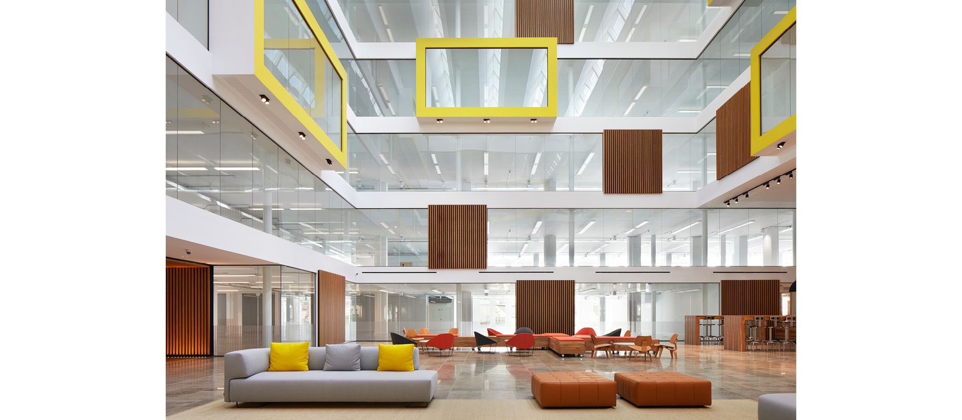 Reggiani’s stylish YORI LED fittings were the preferred choice for the project and have been used in different variations through all five floors of the building. Almost all of the fittings were selected for use in a uniform black finish with a variety of beam angles and were track-mounted, partially recessed or surface-mounted as required and controlled through a DALI dimming system. YORI LINEAR matt black track-mounted fittings with fixed optic and 77 degree beam angles with 26W and 36W variants were also installed throughout to ensure maximum efficiency.