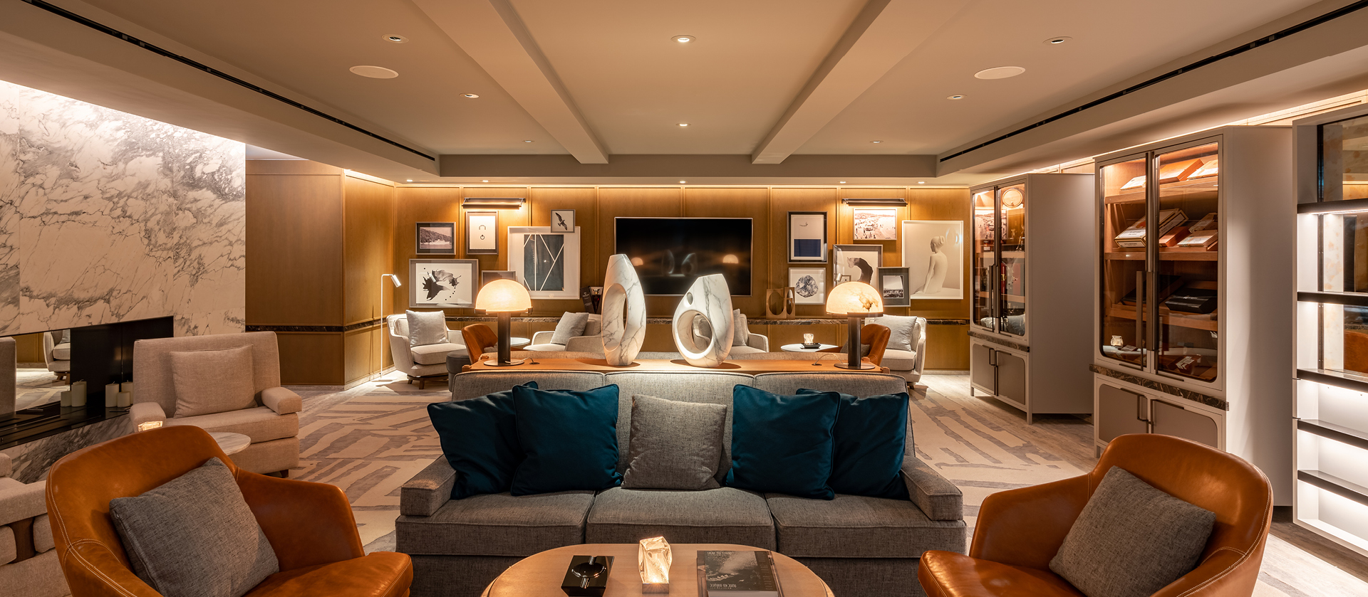 Nafsika’s interior lighting is dramatic and modern. Nafsika’s signature feature is its marble slatted corridors. They are front and backlit with a careful balance, becoming an elegantly lit canvas. The reception gives immediately a welcoming feeling: the lighing result is given by Mood Square, not intrusive yet efficient recessed downlight.